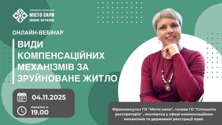 04 листопада о 19-00 Громадська організація “Місто Сили” запрошує на безкоштовний вебінар на тему “Види...